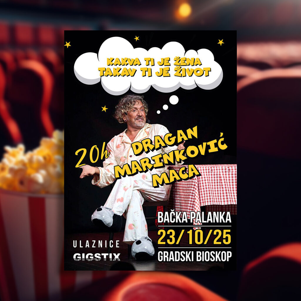 У Градском биоскопу у четвртак, 23. октобра у 20.00 часова биће одиграна позоришна представа Драгана Маринковића Маце “Каква ти је жена такав ти је живот”.