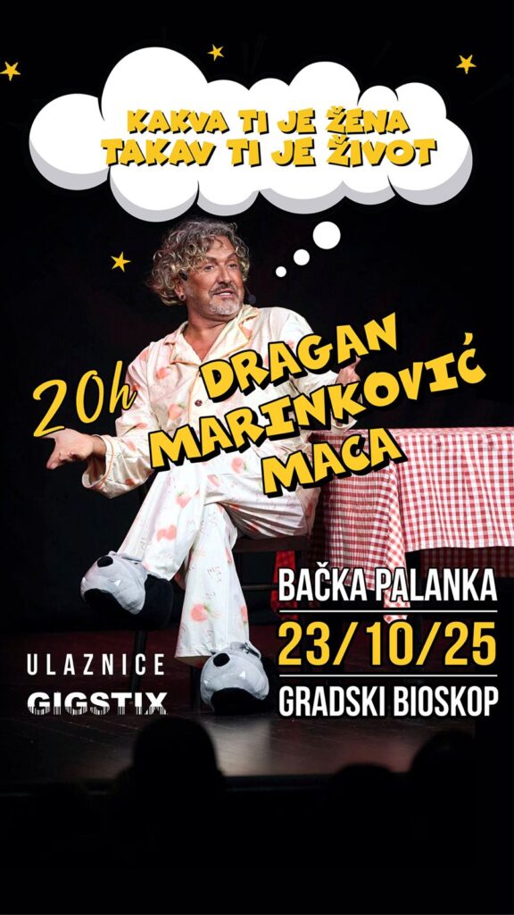 У Градском биоскопу у четвртак, 23. октобра у 20.00 часова биће одиграна позоришна представа Драгана Маринковића Маце “Каква ти је жена такав ти је живот”.