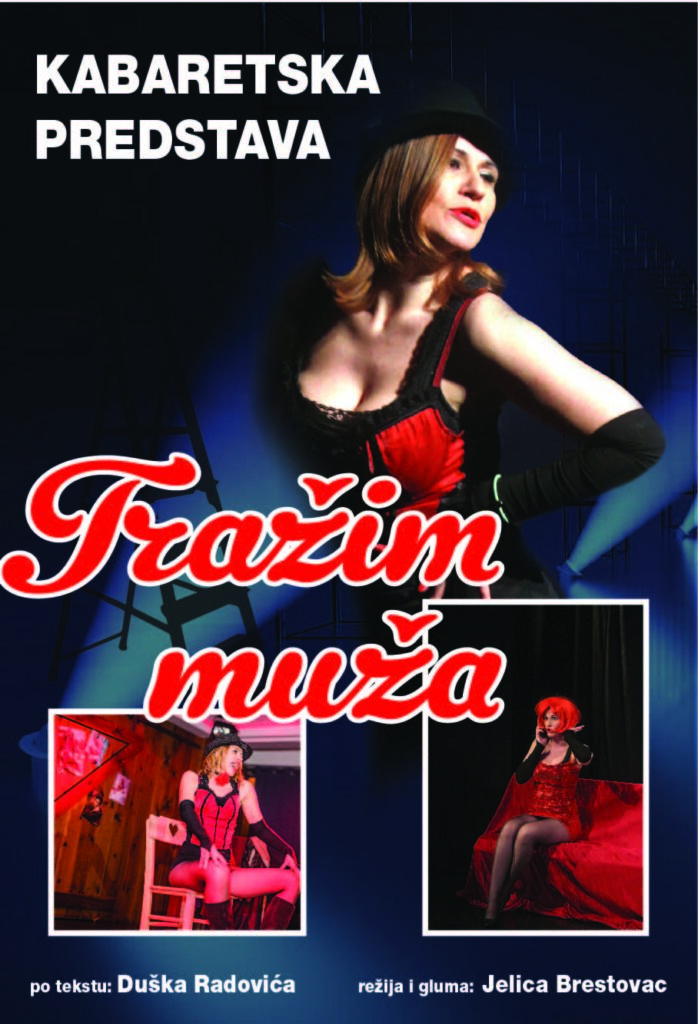 У Градском биоскопу 13. новембра са почетком у 20.00 часова биће одиграна позоришна представа “Тражим мужа”, монодрама кабаретског типа са Јелицом Брестовац.