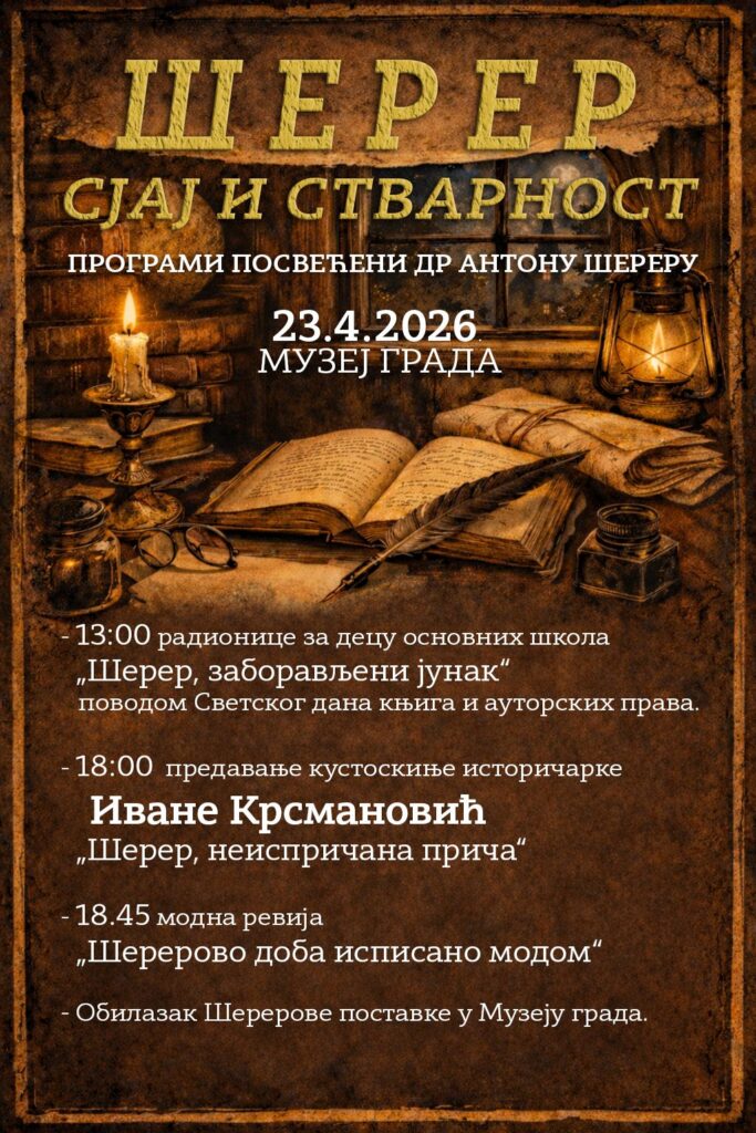 13.00 радионице за децу основних школа „Шерер, заборављени јунак“ поводом Светског дана књига и ауторских права